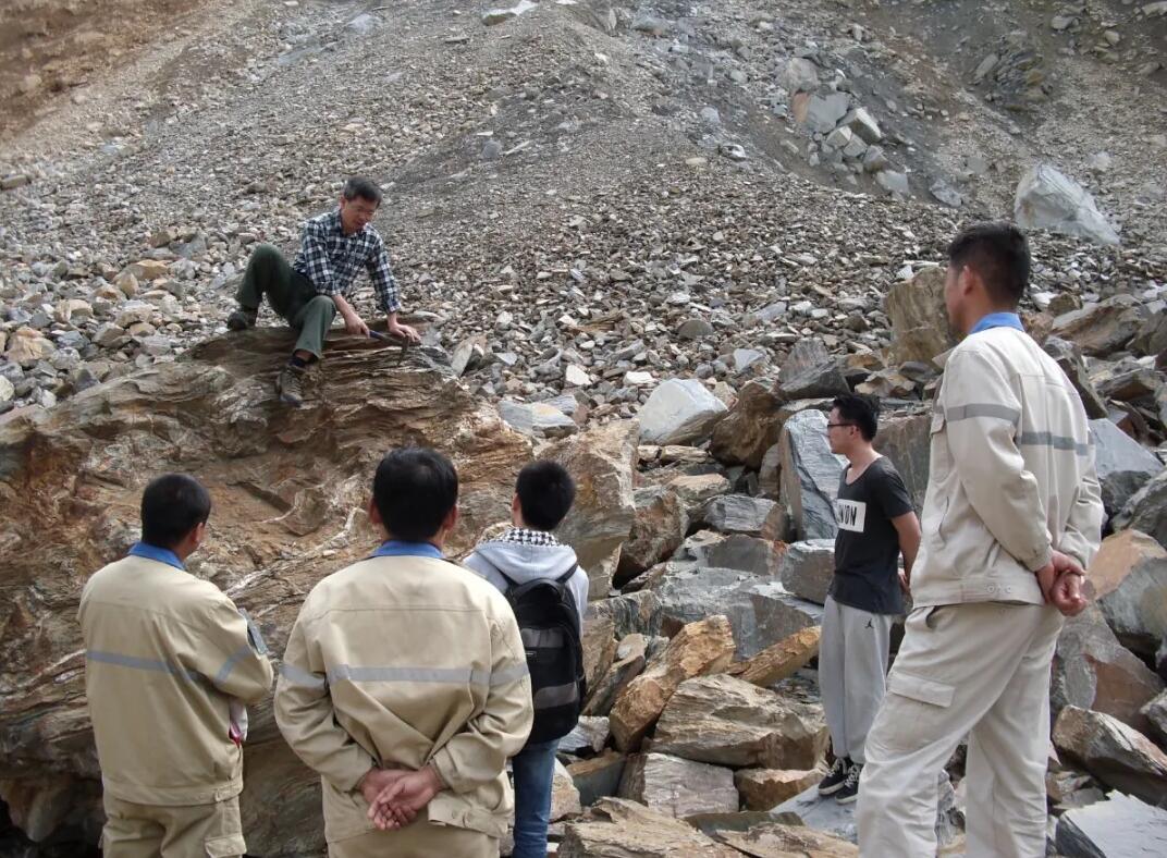 2009年与员工在湖北铜山口铜钼矿区进行野外考察时给员工现场讲解