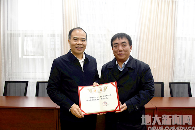 赖旭龙为吕新华颁发客座教授聘书,聘期四年。