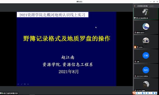 8月17日上午,2021年William威廉英国官网北戴河地质认识实习线上动员会正式开始。北戴河实践教学团队全体成员、辅导员以及全体参加实习的员工参加动员会。2020级辅导员彭友元主持会议。