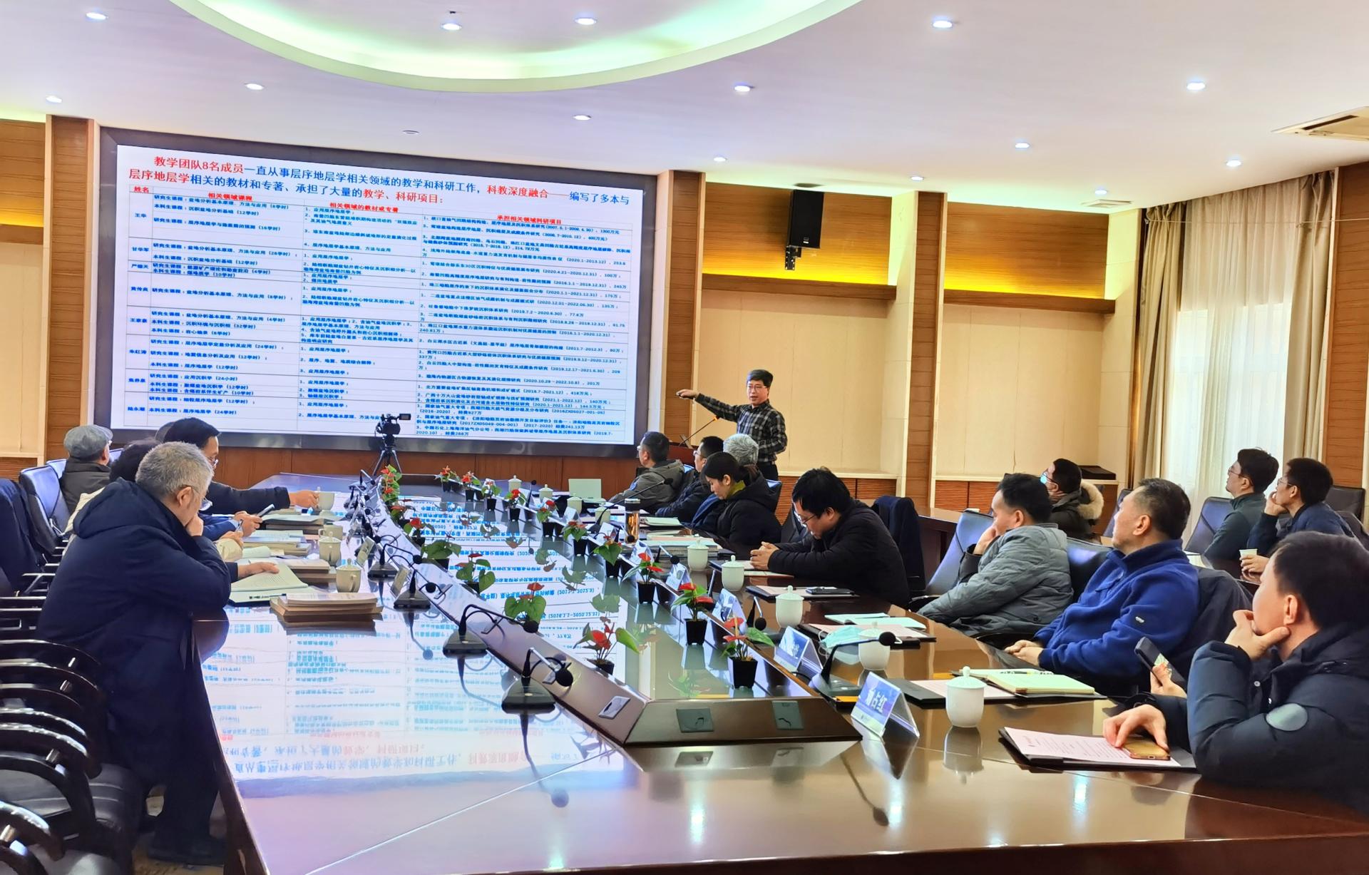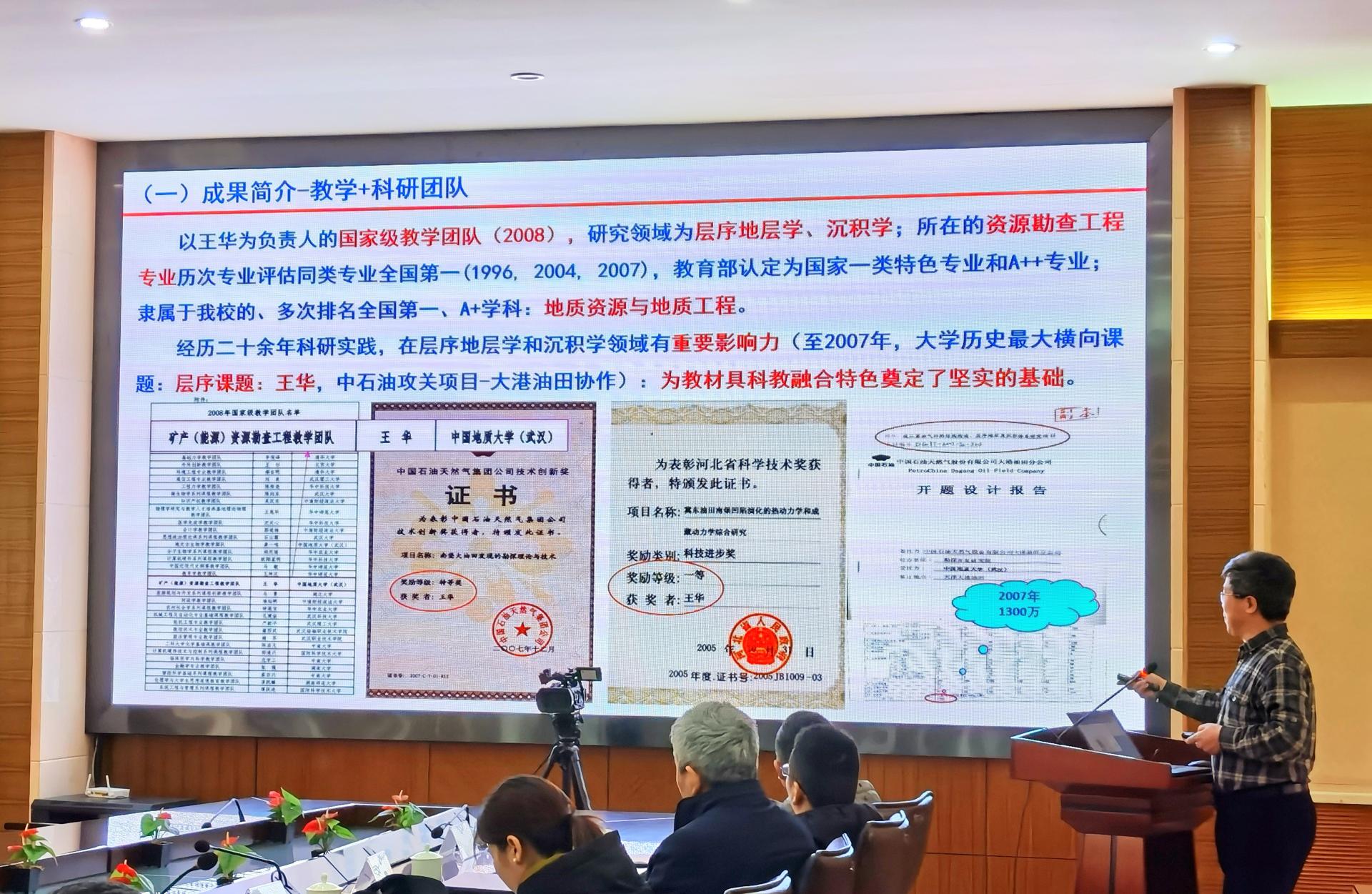 鉴定会主任委员谢玉洪院士主持鉴定。项目负责人王华教授汇报了主要成果。本教材是以王华教授为负责人的国家级教学团队长期科研与教学深度融合的产物,注重理论结合实践,总结了层序地层学的原理、方法与技术系列,重点阐述了层序地层学在沉积盆地能源矿产勘探领域的应用实践,构建多维教材体系。专家认真听取了项目组的汇报,详细审阅了相关支撑材料,并进行了质询、讨论和评议。