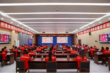 与会人员集中学习习近平总书记在庆祝中国共产主义青年团成立100周年大会上的重要讲话精神。