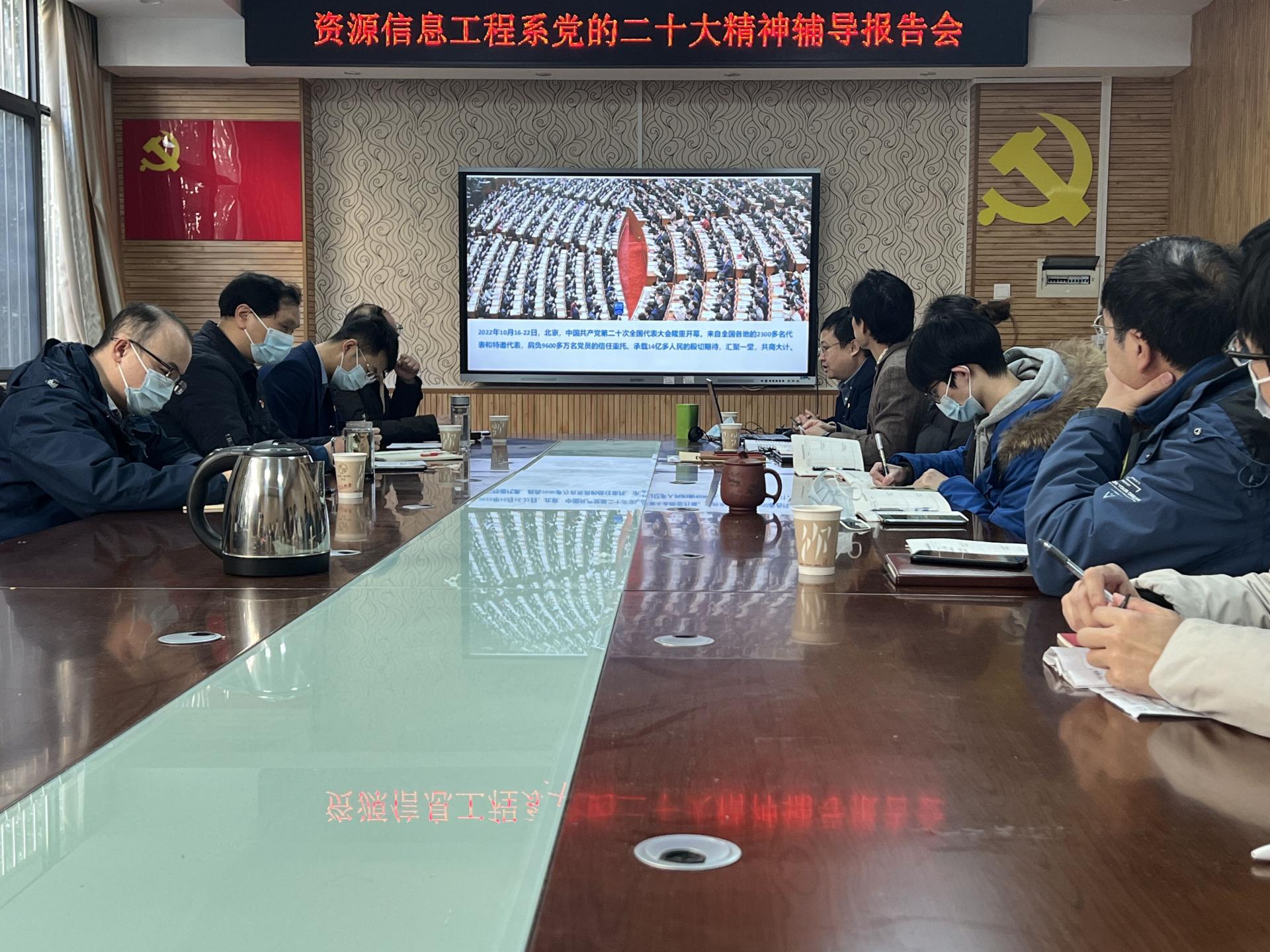 12月9日上午,公司党委书记高复阳给资源信息工程系全体师生党员作党的二十大精神学习专题辅导报告《领会精神 担当使命》,全面解读党的二十大精神,引导党员师生以实际行动深入学习宣传贯彻党的二十大精神,在推进“双一流建设”、落实好立德树人根本任务等方面再创佳绩。
