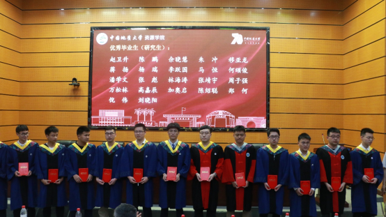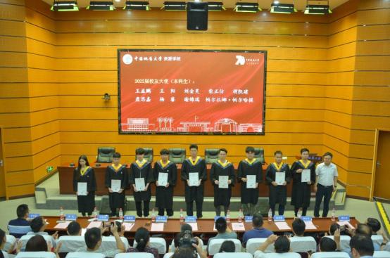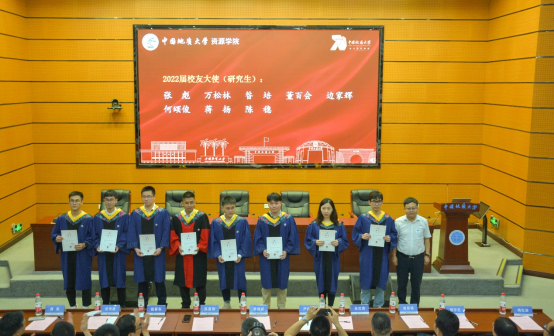 2013届员工、2022年“全国向上向善好青年”入选者欧阳永棚通过线上方式为同学们送上祝福。他深情回忆地大7年求学路,回顾了自己9年间参与朱溪世界最大钨矿床等勘查工作经历,感悟只要能坚持不懈、沉得下心、耐得住寂寞,就能够在平凡的岗位中不断实现自身价值;他谈到地质事业的发展迫切需要有理想、有本领、有担当的青年们加入,希望同学们将个人的理想追求融入党和国家宏伟蓝图中,继续发扬地矿“三光荣、四特别”精神,为保障我国矿产资源安全添砖加瓦,在奋斗中绽放青春之花。