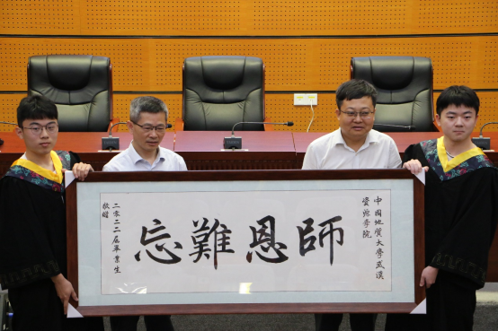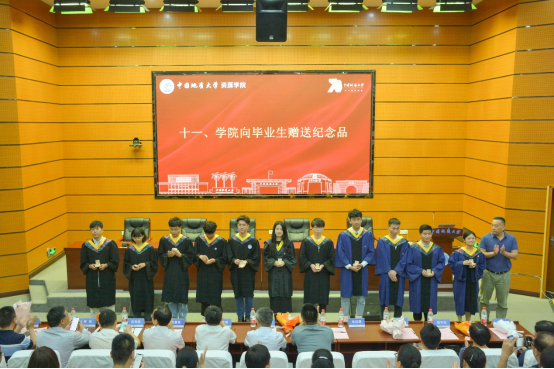 导师代表、“最受员工欢迎老师”获得者李占轲老师寄语全体毕业生,愿大家的内心像石英一样纯净,希望大家能够“不忘地质初心,牢记资源使命”,为祖国的地矿事业贡献力量;愿大家的品质像金子一样闪亮,无论经历炙热的岩浆热液,或是冰冷的河流冰川,纵使满身擦痕、依然金光闪闪;愿大家的价值像石油一样重要,像“工业的血液”石油那样,在高速行驶的汽车里、在撒向良田的化肥中,在祖国需要的各个角落充分发光发热,实现自己的人生价值;愿大家像磁铁矿一样,无论大家身处何处,也要同母校、同学保持联系。