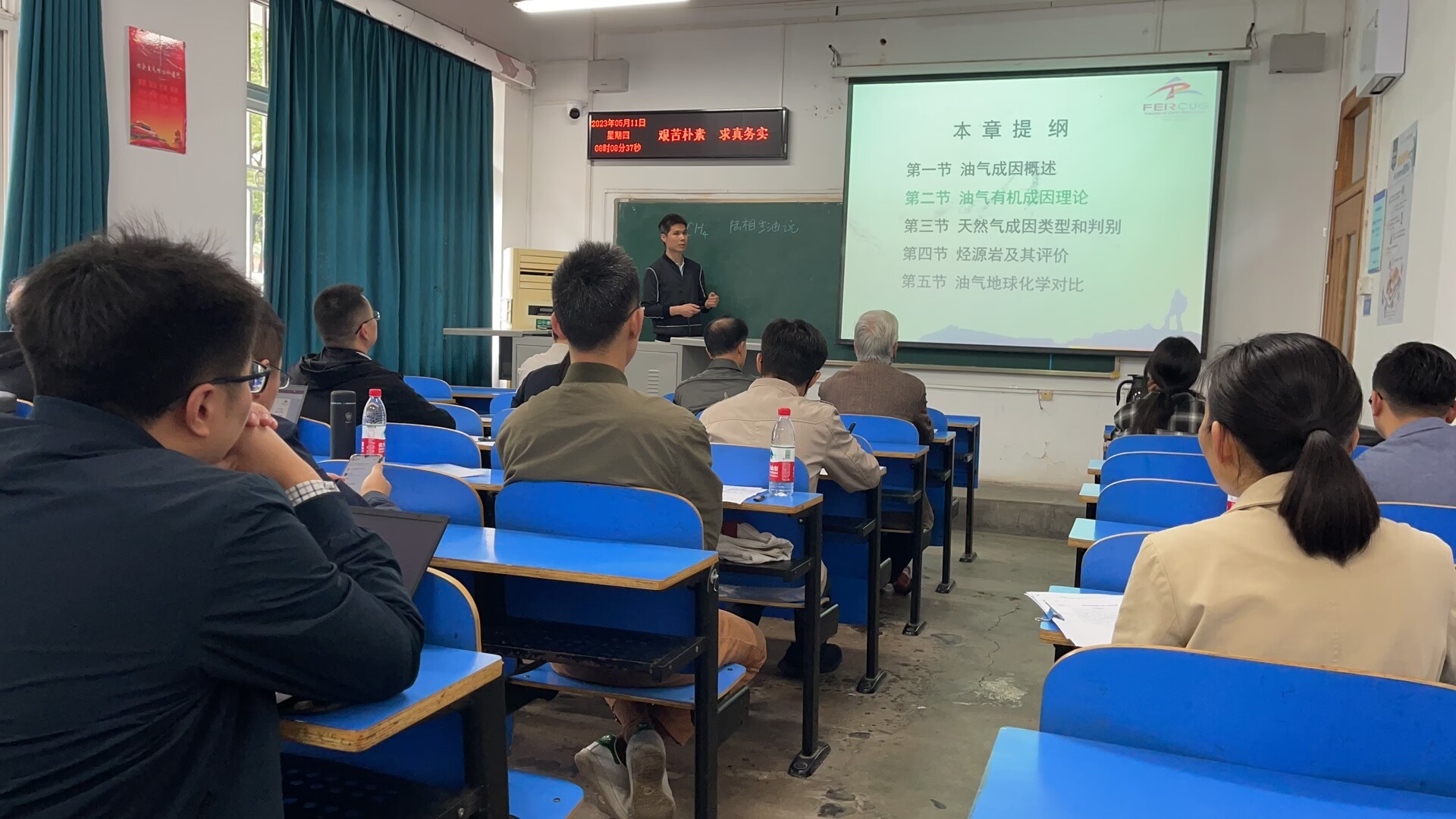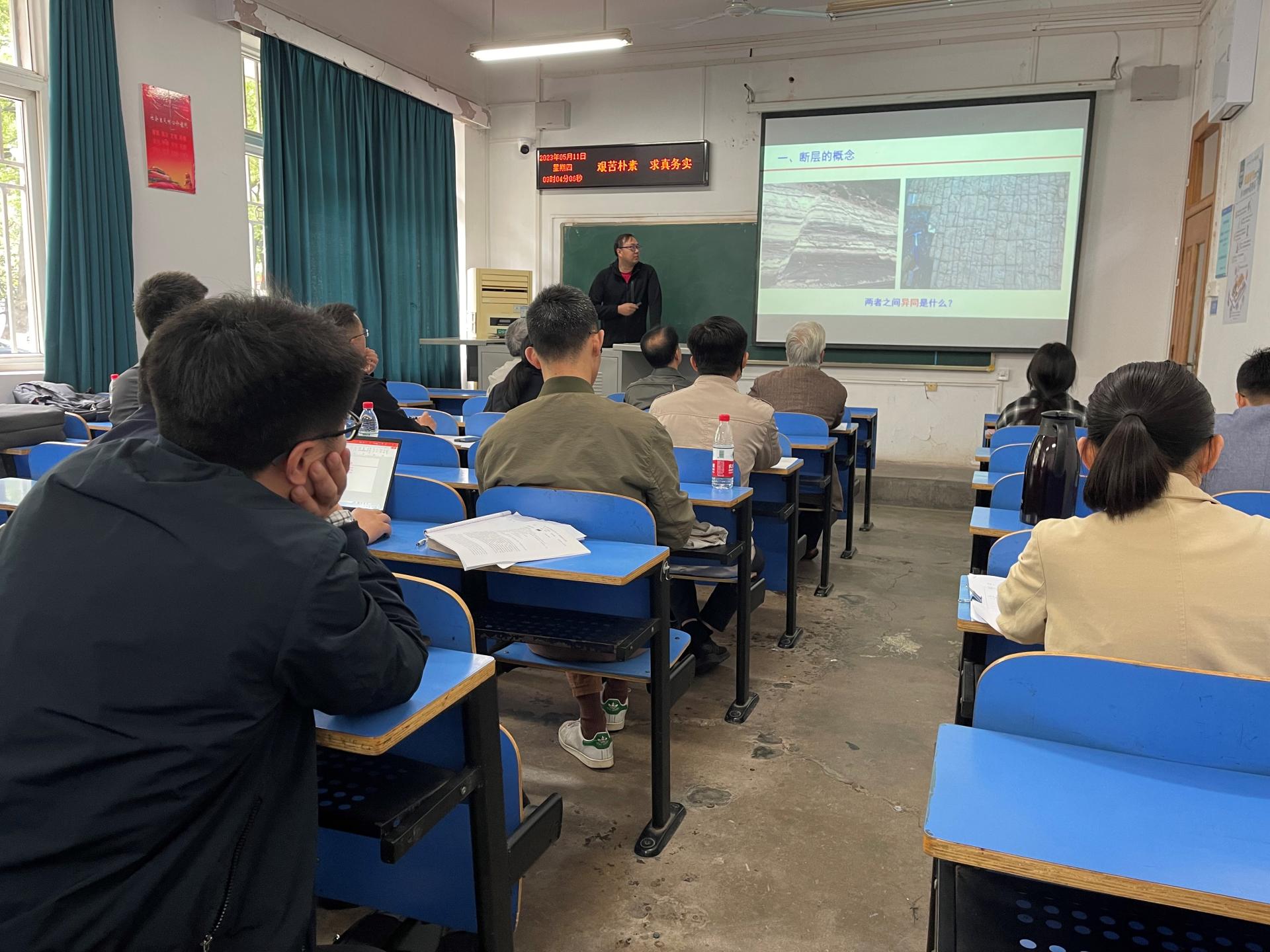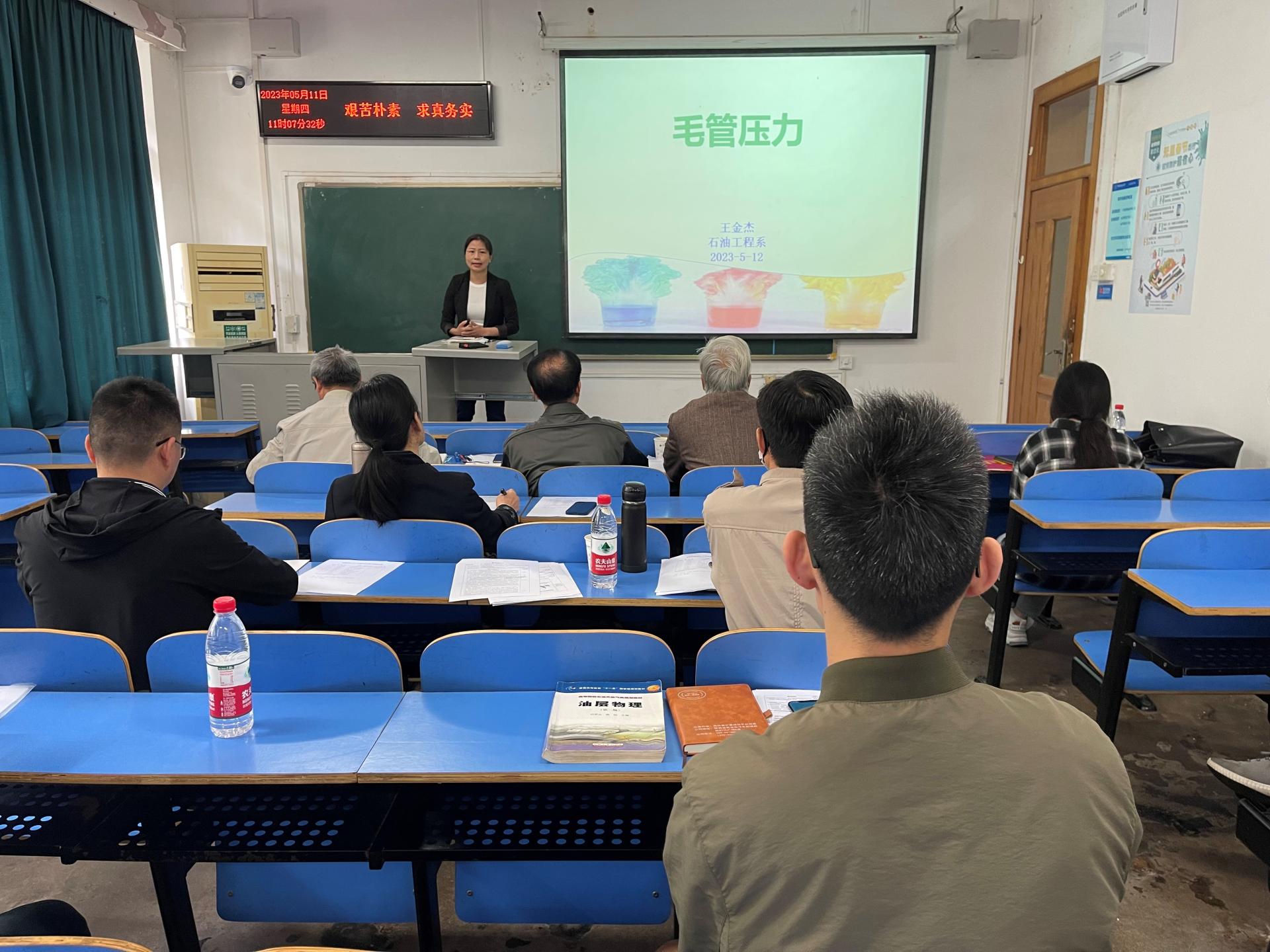 朱钢添老师讲述了《石油及天然气地质学》中的油气成因概述与有机成因,逻辑清晰、多媒体规范。他由专业关键词在数据库搜索的文献数据指出公司在相关专业领域做出了重要的工作,提升员工对专业的认同。孟庆帮老师用清晰的示意图和公式推导讲解了难度较大的《油气层物理学》中的单组分体系的相态特征,重难点突出,课程具有层次性。伏海蛟老师在《普通地质学》的断层的定义与分类讲述中融入了大量的地质现场图片,使员工获得直接的感受,理论与实际相结合。他讲解了我国古代诗人笔下的地质现象,两者结合引起员工对地质的学习兴趣。付乐兵老师在《矿产勘查理论与方法》的矿床勘查与储量估算的讲述中通过回顾上节课、提问等方式帮员工梳理知识,启发思维,他在介绍课程起源时提到公司赵鹏大院士是在国内建立起这门课的第一人,激发员工的专业认同和自豪感。王维老师从俄乌冲突导致的欧洲能源危机导入《沉积相与沉积环境》的扇三角洲体系的学习,从玛湖砾岩油田勘探获得国家科技奖励激发员工能源报国的热情,课程生动具体、引人入胜。