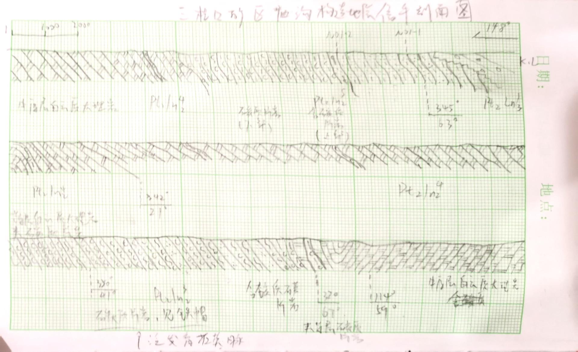 东升庙矿区庙沟地表考察构造-地层信手剖面图