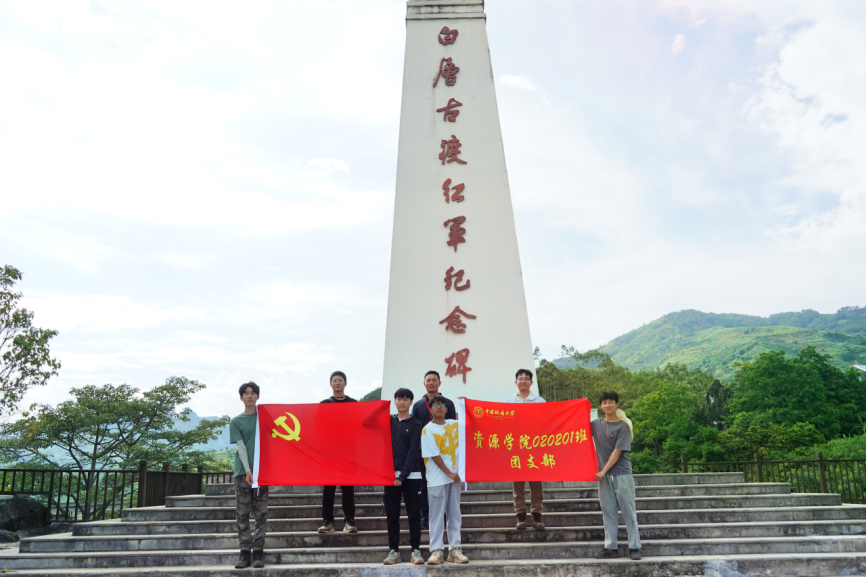 实训小组在白层古渡红军纪念碑前合影