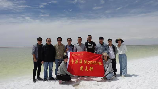 察尔汗盐湖位于青海省格尔木市、柴达木盆地最低洼地带,是中国最大的盐湖,也是世界上最著名的内陆盐湖之一。察尔汗盐湖面积广阔、风光独特,有着极为丰富的钾镁盐资源,不仅是青海省最重要的资源,也是国家战略性资源。7月4日至12日,刘成林老师带队,基地班方心云、王宪国、陈宇琪、朱芋谌、程梦鑫5位同学组成实训小组前往青海进行盐湖钾盐矿床地质实训。本次实习的基本内容包括考察盐湖地貌、盐类矿物、雅丹地貌及昆仑山冰川等,测量了三条盐湖沉积剖面,观察了盐湖卤水析出的石盐、钾盐矿物,发现了地层中的贝壳化石等,还参观了察尔汗盐湖钾盐、碳酸锂生产工厂,了解盐田蒸发分级提取及车间工艺流程。同学们还进行了盐类矿物的钾试剂反应实验,撰写了盐湖钾盐成因与提取技术小论文,培养了观察、分析和总结等科研基本能力。