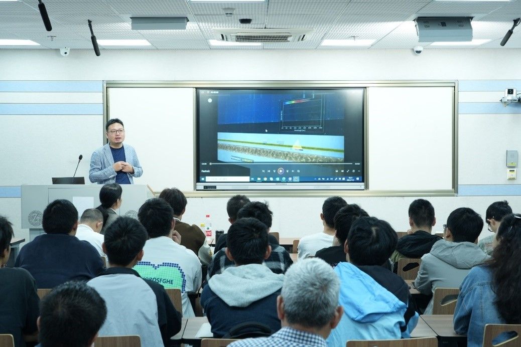 开发地质教学组在录播教室开展教学观摩,石油工程系毕业生雷国文博士结合本科在校的学习经历及国外留学、工作经历为《油气开发地质学》MOOC课程录制“地层测试与应用”见面课。