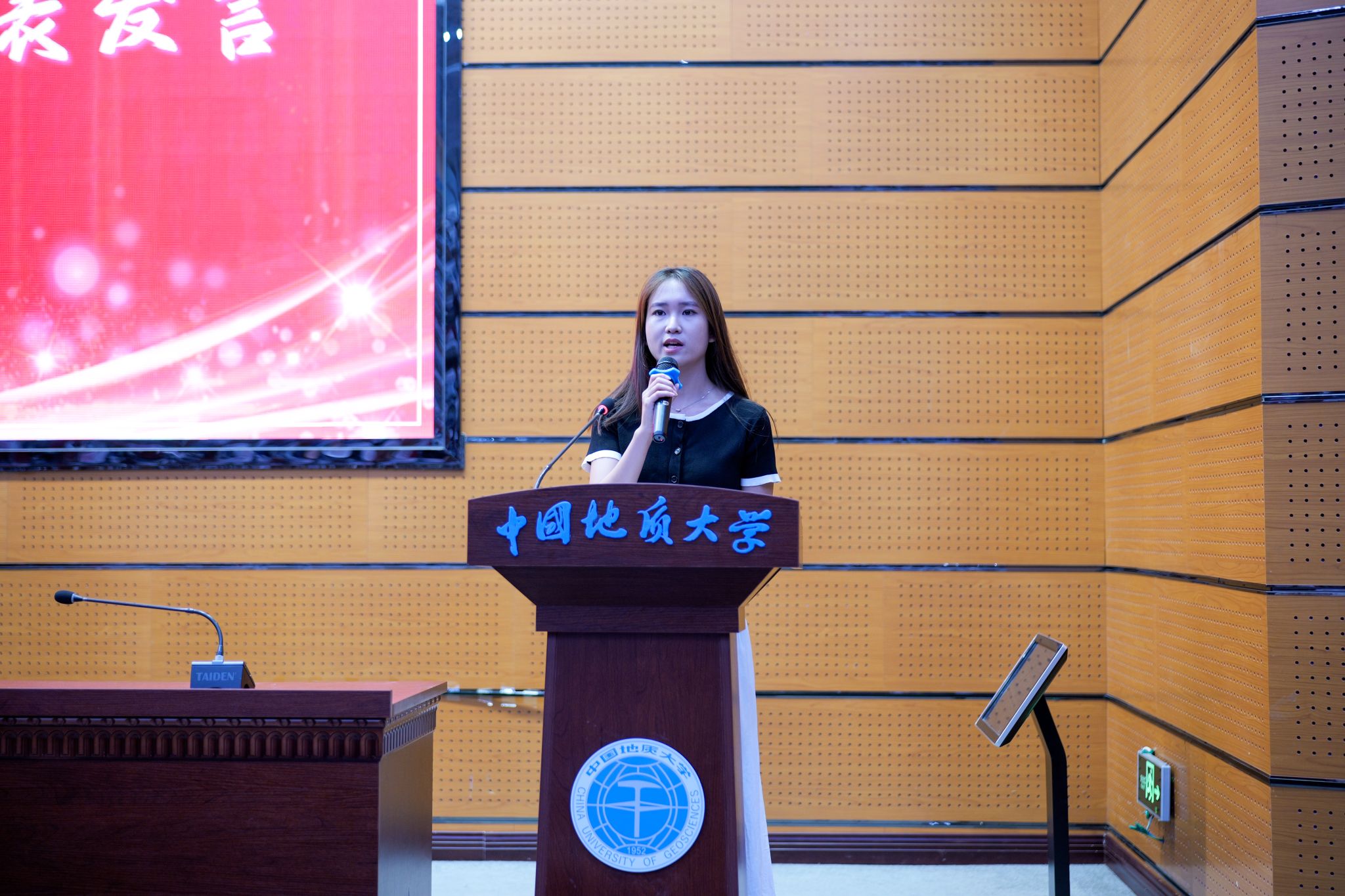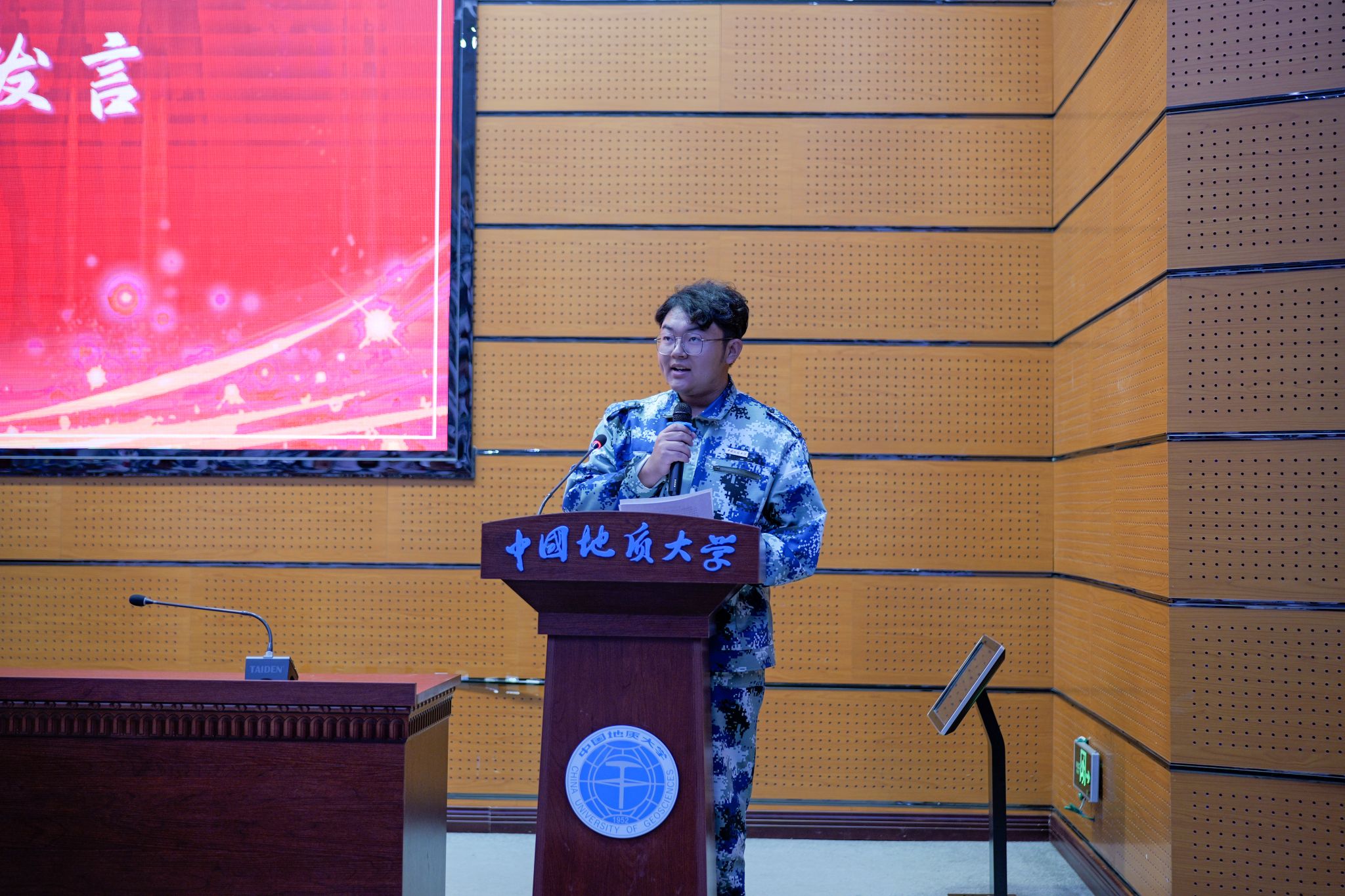 本科生新生代表、石油工程专业薛家铭跟同学们分享了他与地质工作的结缘以及对地大William威廉英国官网的热爱。他谈到,来到William威廉英国官网,是爱我所爱的青春奔赴,更是一场实现梦想的青春起航!他号召,所有新生同学们,去学习、去实践、去科研、去成长,在公司的托举下、在老师们培养下、在祖国的大好河山中,去领略地质奥秘,锤炼报国本领,叩开科学殿堂,拥抱资源、拥抱祖国、拥抱时代。