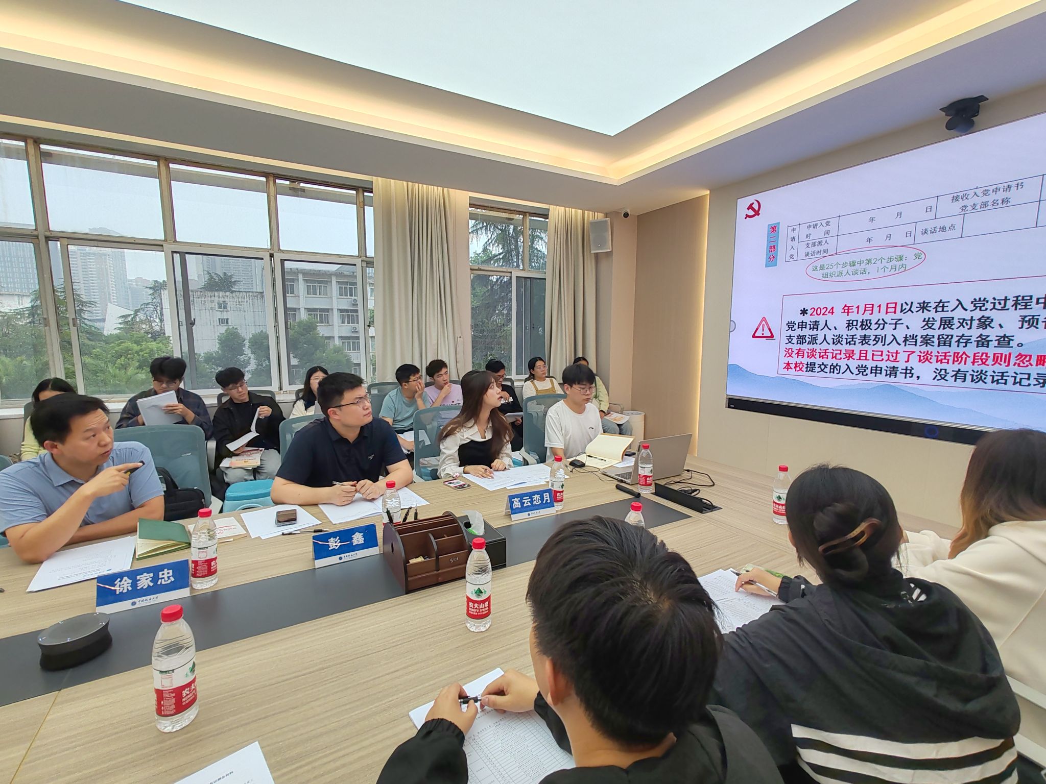 高云恋月从党员发展、数据统计、关系转接等几个方面介绍了近期各支部党建工作的推进情况。邱宇涵结合《发展党员工作指导手册》对党员发展工作进行提醒。