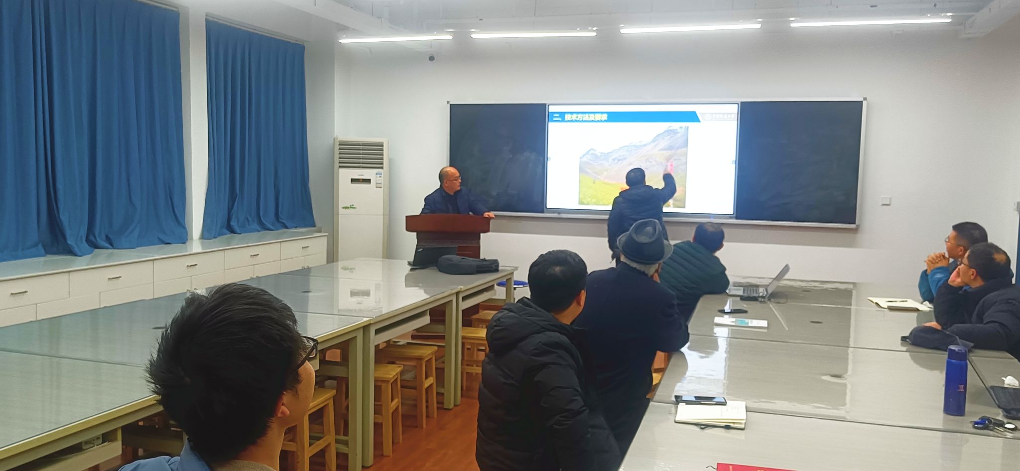 与会老师积极发言。魏俊浩老师指出目前存在工科课程理科化的问题,而该门课程与实践紧密结合,充分体现了工科特色。课程教学内容的修改要符合实际野外勘查情况,讲课内容不要与其余的勘查类课程重复。谭俊提出要在尊重原版教学内容的基础上,简化课程教学内容,降低工作量要求。杨振老师建议给员工授课时不要让员工按部就班的参照规范,要多讲一下为什么,提出勘查规范设计中蕴含的科学意义,教育员工以科学研究的态度去研究勘查规范。会议明确了矿产勘查项目设计实习课程的教学内容更新建设方向,拟于明年上半年再进行一次课程讨论。