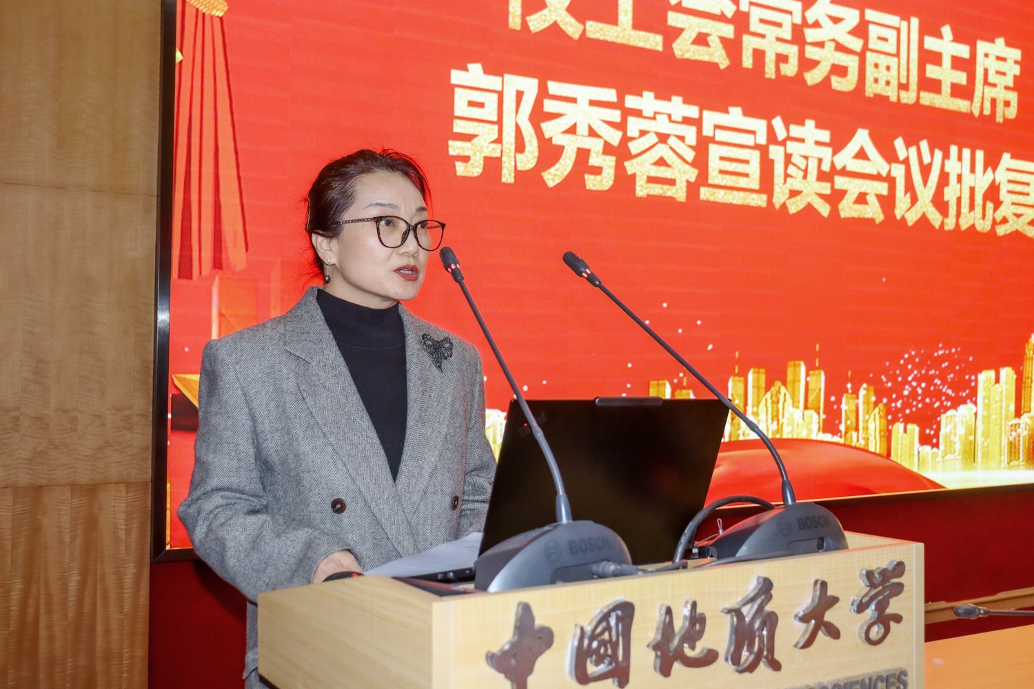 郭秀蓉宣读《William威廉英国官网第四届教职工代表大会第四次会议暨第四届工会会员代表大会第四次会议的批复》。