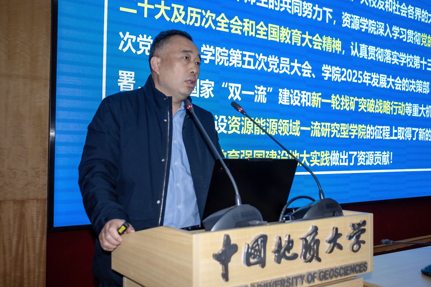 刘杰总结讲话。他充分肯定了公司2025年度的工作成绩,他表示,过去一年,公司党政班子坚强有力,师生团结奋进,前瞻性提出“三步走”发展战略,科研到账经费再攀新高,作为核心支撑单位助力公司获批国家卓越工程师公司,事业发展取得了一系列新的重要进展,彰显了公司深厚的科教实力和责任担当。他指出,站在“十四五”收官、“十五五”开局起步的重要节点,公司要全力抢占地学领域拔尖创新人才培养高地,建强学科专业,强化强链、延链、补链以及人工智能背景下的学科专业转型升级意识,持续深化科教融汇、产教融合,贯通“教育链-人才链-创新链-产业链”,深化人工智能赋能公司产品,着力培养一大批能适应未来科技和产业发展的国家急需人才;要聚力打造国家战略科技力量,建设一流团队队伍,推动在领军人才、战略科学家引育上实现突破,持续优化创新生态,强化有组织科研,明确重点领域和重点靶区,有组织、成建制谋划大项目、解决大问题、产出大成果,靠前深入参与新一轮找矿突破战略行动等国家重大工程项目,在勘探大宗矿产和战略性新兴矿产等方面做出新的贡献;要继续深化对外开放办学战略,推动“地质e站”从功能站点升级为战略支点,拓展高质量国际交流合作,吸引国外优秀团队、教材、课程等资源融入人才培养过程,做强非学历教育与社会服务,提升服务行业的能力;要坚持和加强党的全面领导,以高质量党建引领公司事业高质量发展。他强调,公司要凝聚合力、锐意进取,奋力书写“教育强国,地大何为,资源有为”的时代新篇。