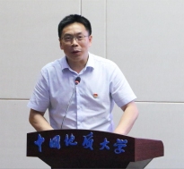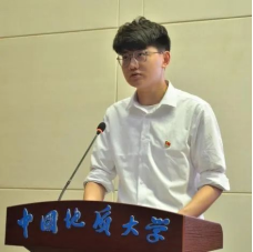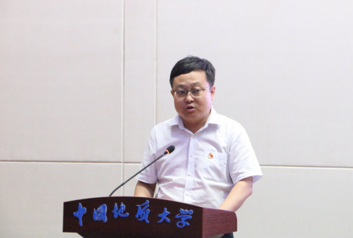 新发展党员代表、博士生范高华同学发言。他回顾了在自己地大十余载的求学与成长经历,报告了自己对公司教育和组织培养的感激之情,分享了新加入中国共产党这个光荣组织的激动心情,表达了自己在攀登科学高峰中追求卓越,在真刀真枪中实干一番事业的信心和决心!