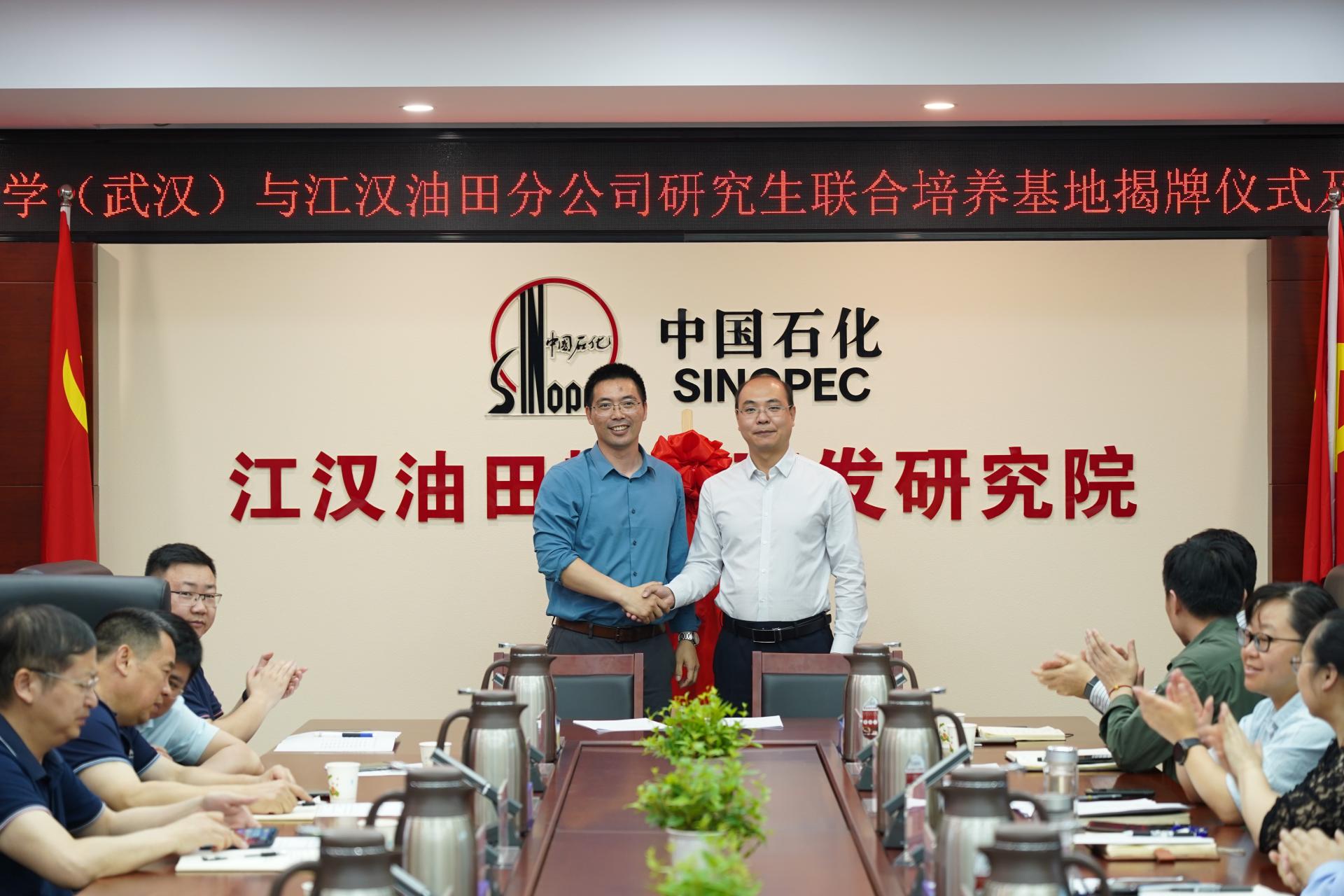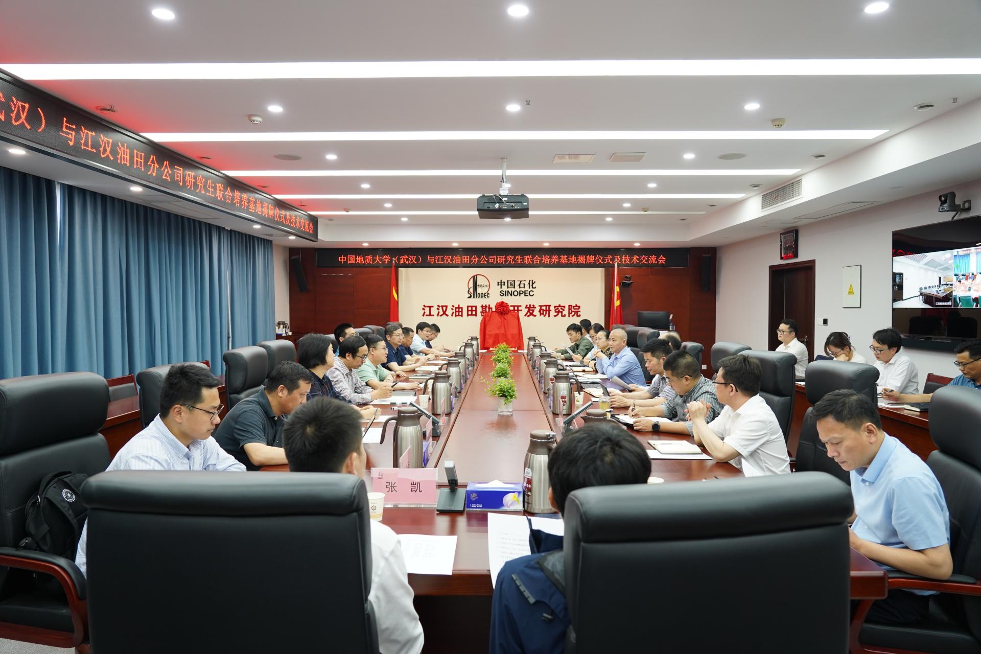 4月18日,公司与江汉油田研究生联合培养基地共建签约、揭牌仪式暨技术交流会在江汉油田分公司勘探开发研究院举行。江汉油田分公司科技部经理熊智勇、副经理胡方明,勘探开发研究院经理包汉勇、勘探开发研究院副经理刘其军,油田单位、部门主要负责人,公司研究生院副经理成中梅,科学技术发展院重大项目办主任蒋凤,资源公司党委书记高复阳、经理严德天、副经理赵葵东和石油地质系、石油工程系部分教师参加了签约揭牌仪式和技术交流会。刘其军主持仪式。