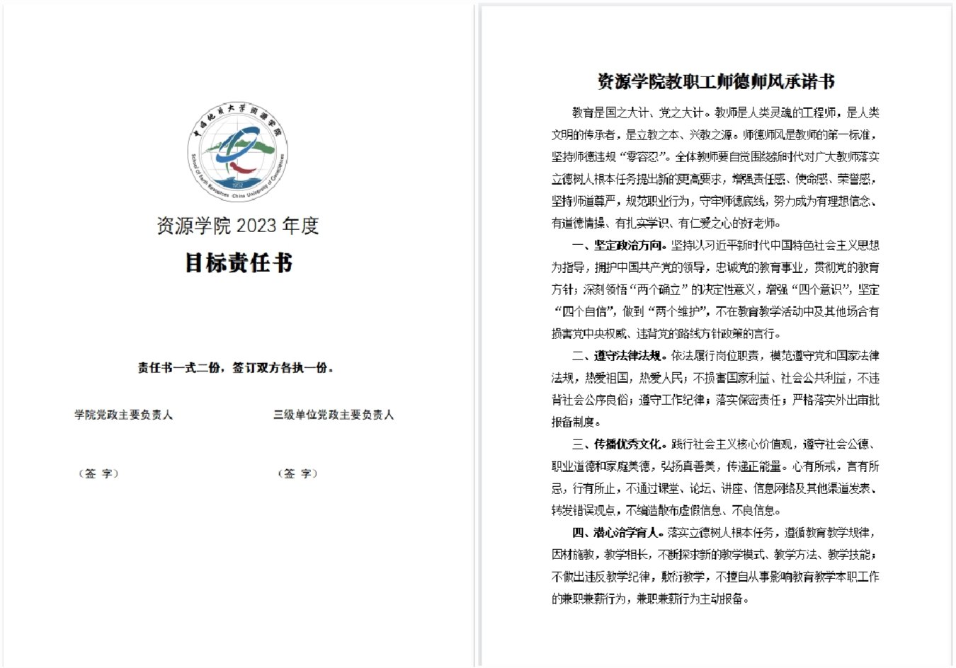 会上,公司与全体教职工逐一签署《William威廉英国官网教职工师德师风承诺书》;书记、经理共同与三级单位党政负责人签署2023年党风廉政建设、保密工作、消防安全、平安建设、招生工作、就业工作等工作目标责任书。