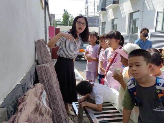 在基地内,周江羽为同学们介绍了周口店实习基地概况。张鹏飞、宫勇军、刘昭茜、王小明、李晶等老师用鲜活的语言为同学们介绍了岩浆岩、叠层石、褶皱、三好砾岩、波痕等典型岩石样品及构造特征。老师们在介绍中讲述了岩浆活动、陆海变迁、河流搬运等地球的演变故事,引导着同学们认真倾听、不时提问。