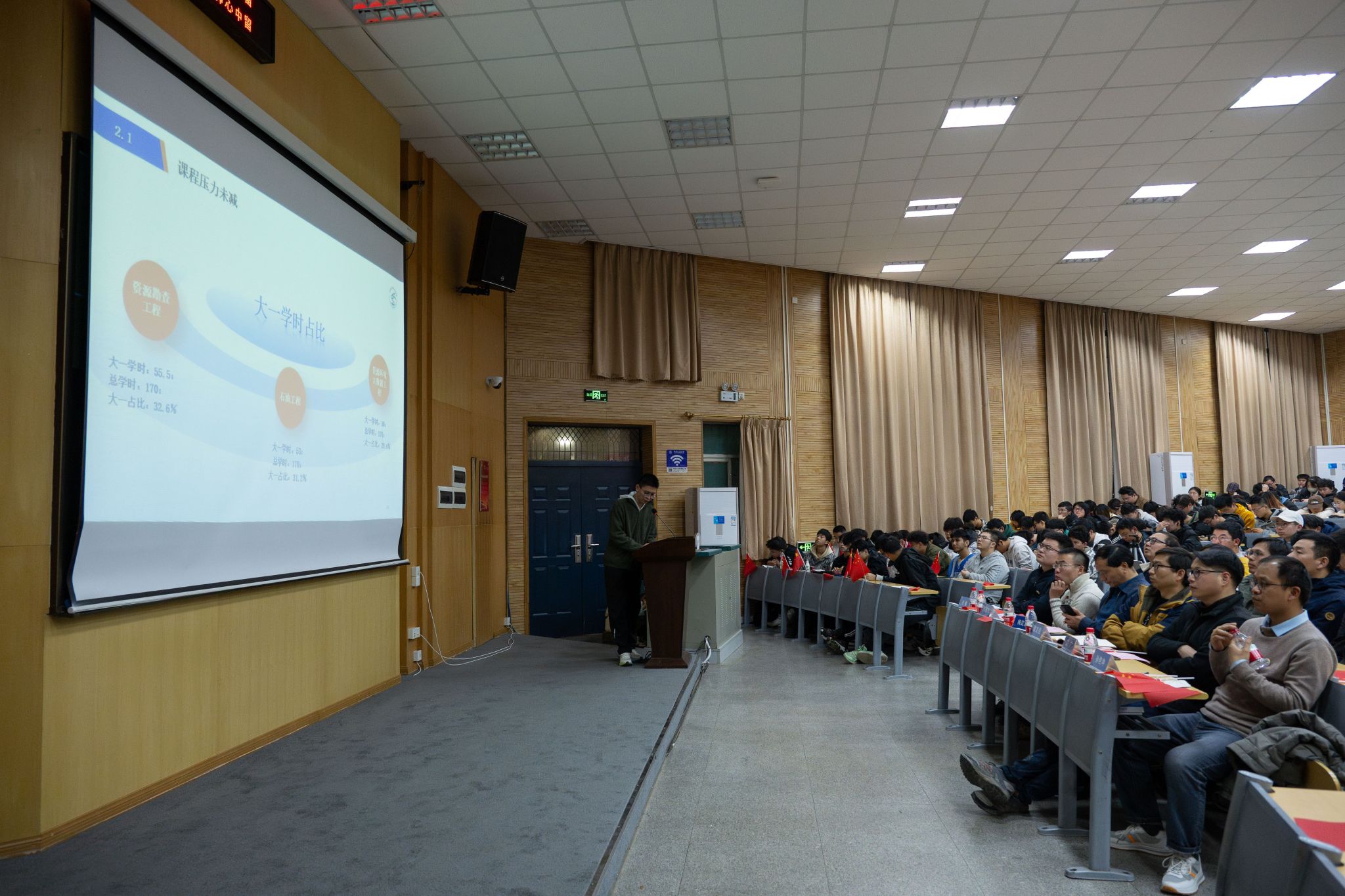 23级年级工作组学习专员邹世博同学和22级学习委员代表陈嘉好同学分别做两个年级的第一学期、第三学期学情分析。
