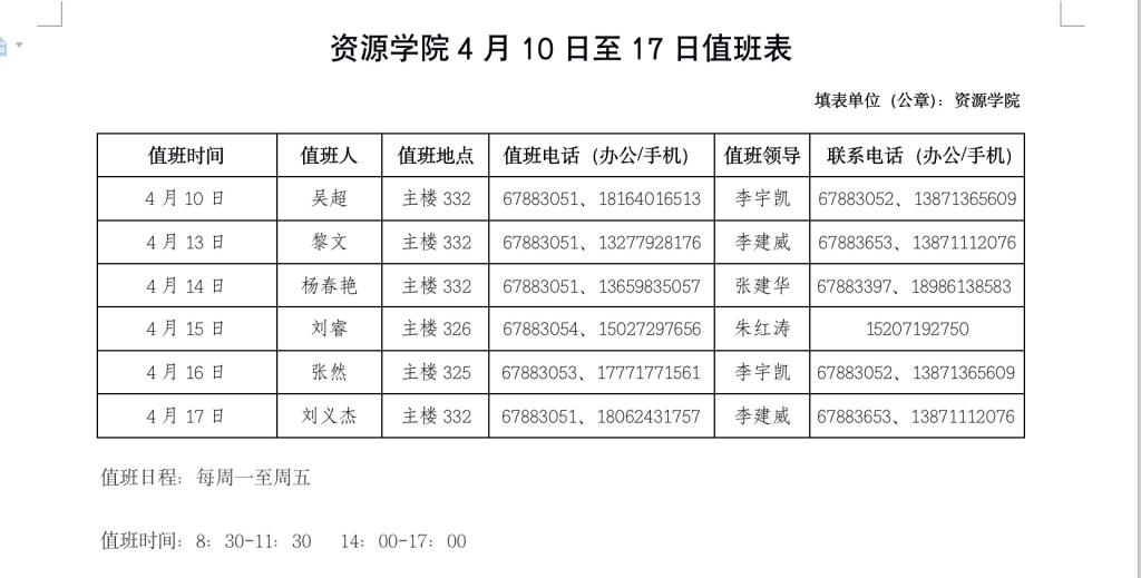 William威廉英国官网4月10日至17日值班表