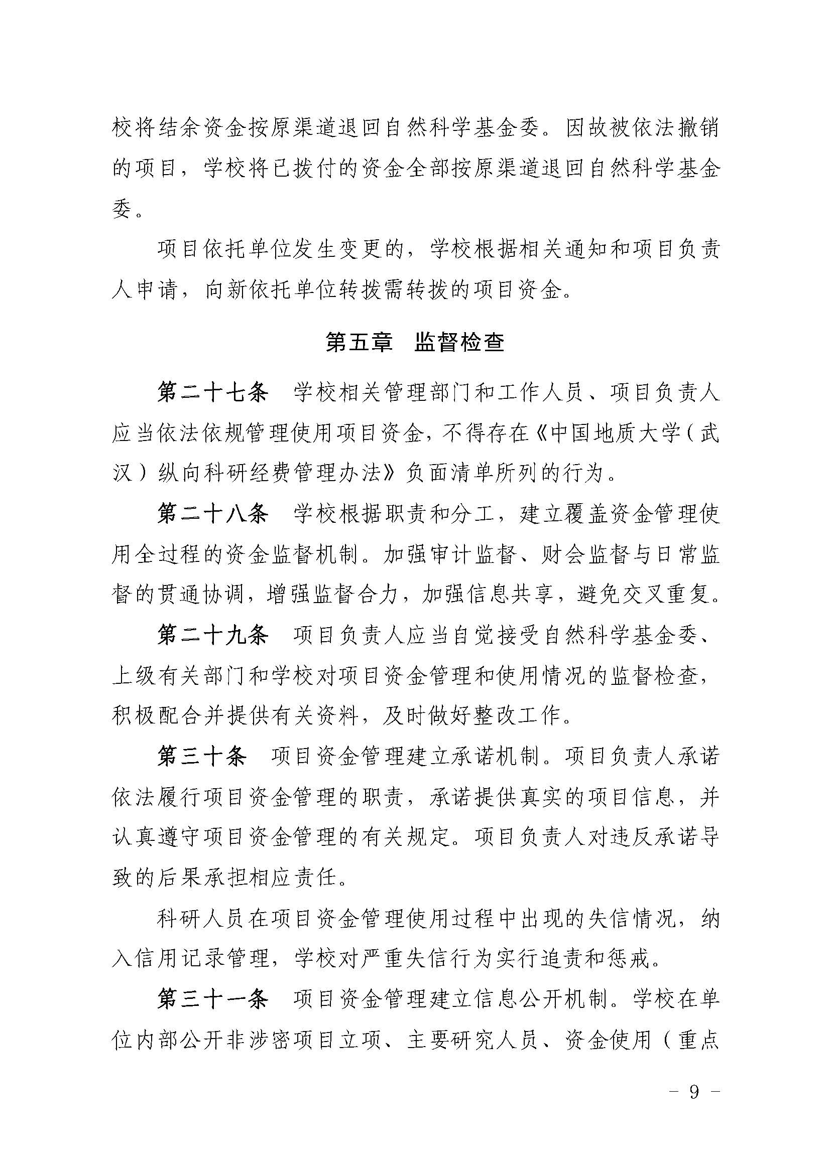 williamhill威廉官网(武汉)国家自然科学基金资助项目资金管理办法
