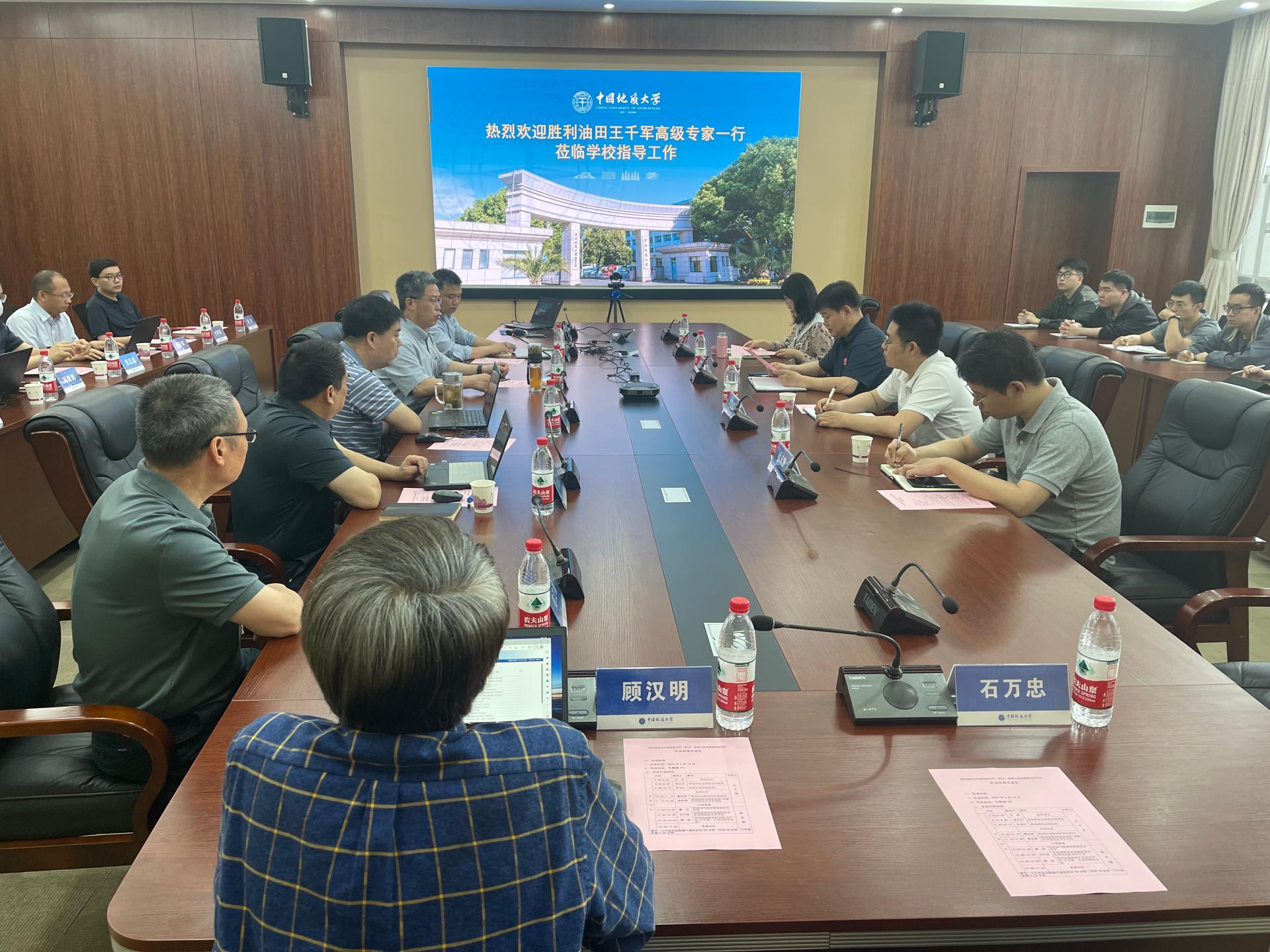 王华对王千军一行来校调研表示欢迎,并从团队队伍、学科方向、科学研究、科技创新平台、新校区建设等方面介绍公司整体情况。他希望,双方建立常态化合作机制,畅通合作共商沟通渠道,搭建合作平台,聚焦胜利油田勘探开发需求,强化重大项目交流合作,持续推动科教融合、产教融合,积极与油田开展科研平台合作共建,主动承担重点项目科学研究,解决油田勘探开发实际问题。