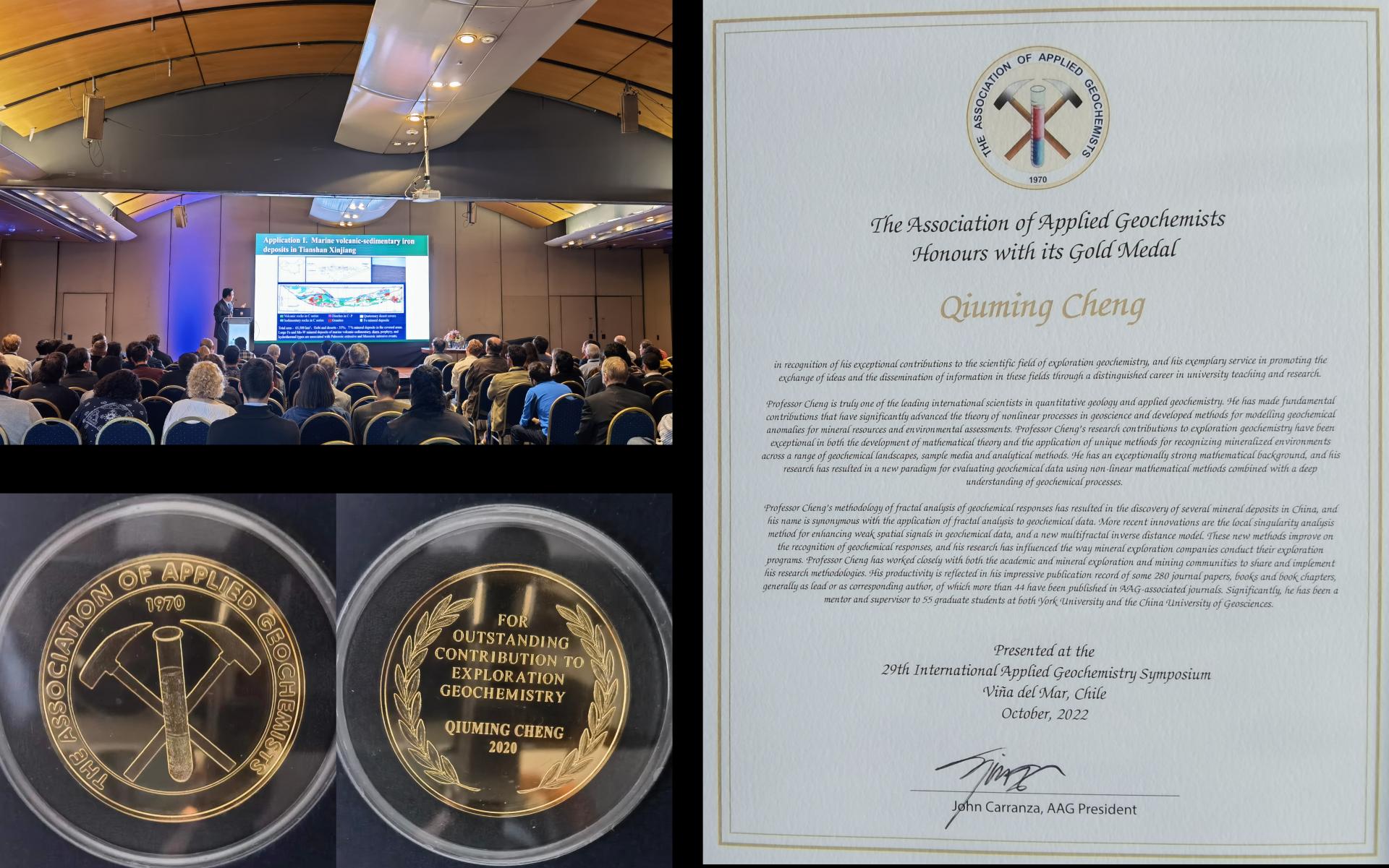 10月28日,在智利比尼亚德尔马举行的第29届国际应用地球化学大会上,中国科公司院士、williamhill威廉官网地质过程与矿产资源国家重点实验室主任、William威廉英国官网成秋明教授荣获国际应用地球化学协会最高奖—AAG金奖(AAG Gold Medal)。
