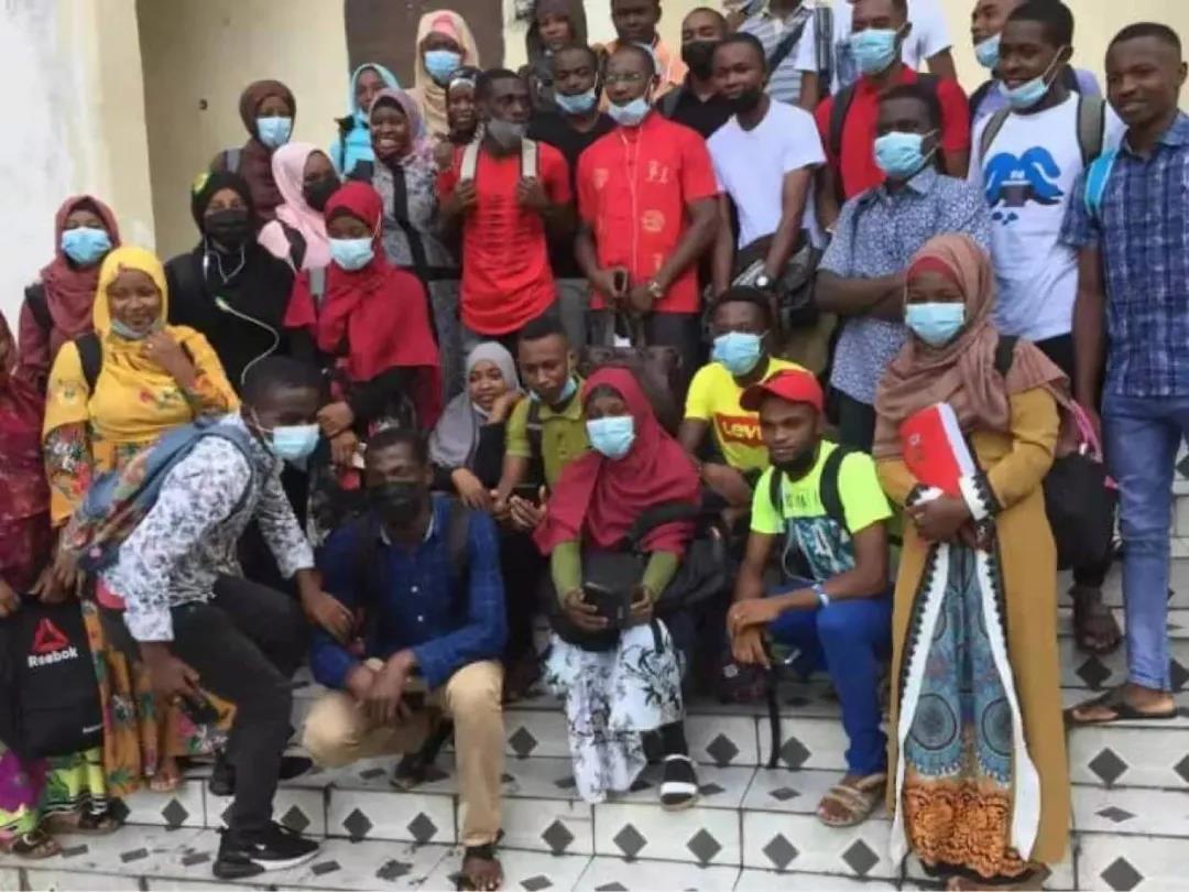 阿拉丁(二排右五穿红色唐装)与其教授的科摩罗大学员工