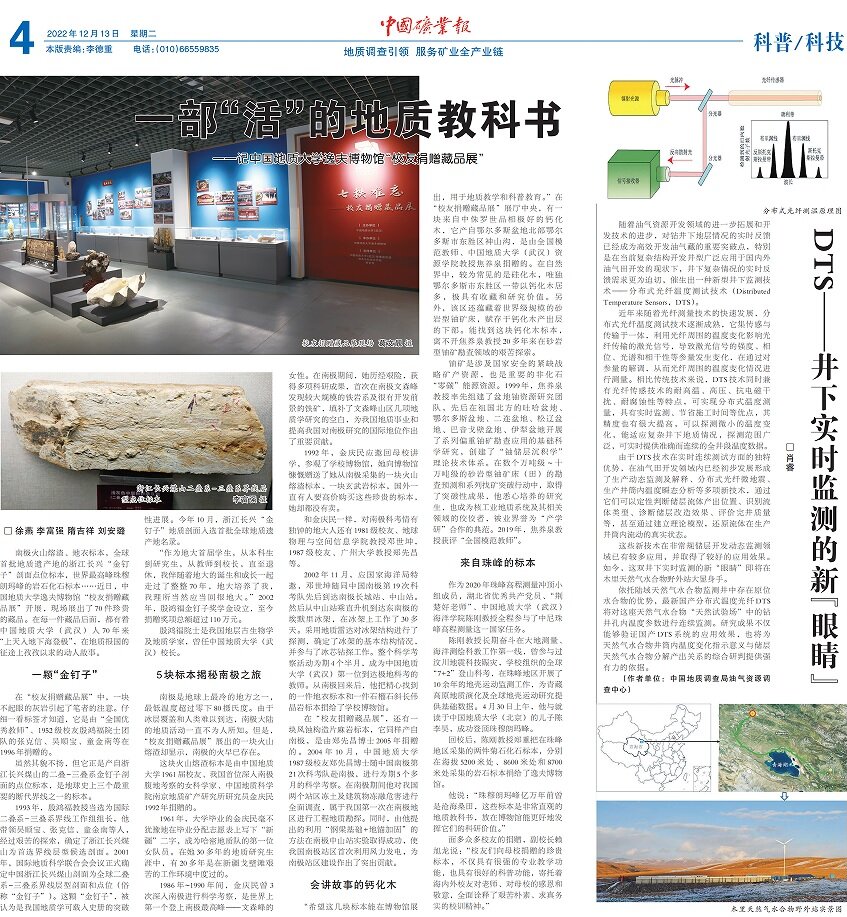 “希望这几块标本能在博物馆展出,用于地质教学和科普教育。”在“员工捐赠藏品展”展厅中央,有一块来自中侏罗世品相极好的钙化木,它产自鄂尔多斯盆地北部鄂尔多斯市东胜区神山沟,是由全国模范教师、William威廉英国官网教授焦养泉捐赠的。在自然界中,较为常见的是硅化木,唯独鄂尔多斯市东胜区一带以钙化木居多,极具有收藏和研究价值。另外,该区还蕴藏着世界级规模的砂岩型铀矿床,赋存于钙化木产出层的下部。能找到这块钙化木标本,离不开焦养泉教授20多年来在砂岩型铀矿勘查领域的艰苦探索。